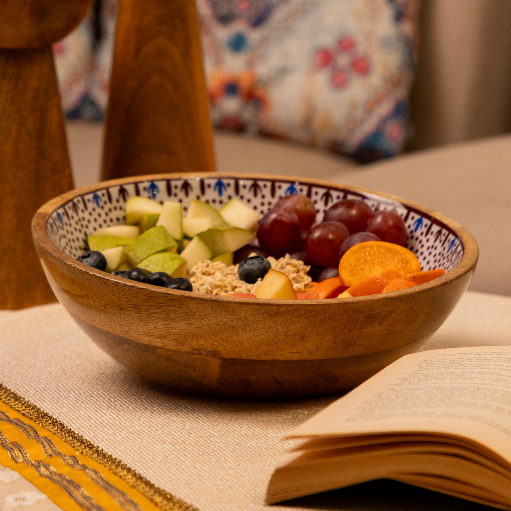 Meena Wooden Fruit Bowl (Set of 1) – A Fusion of Tradition and Elegance for Your Festive Decor